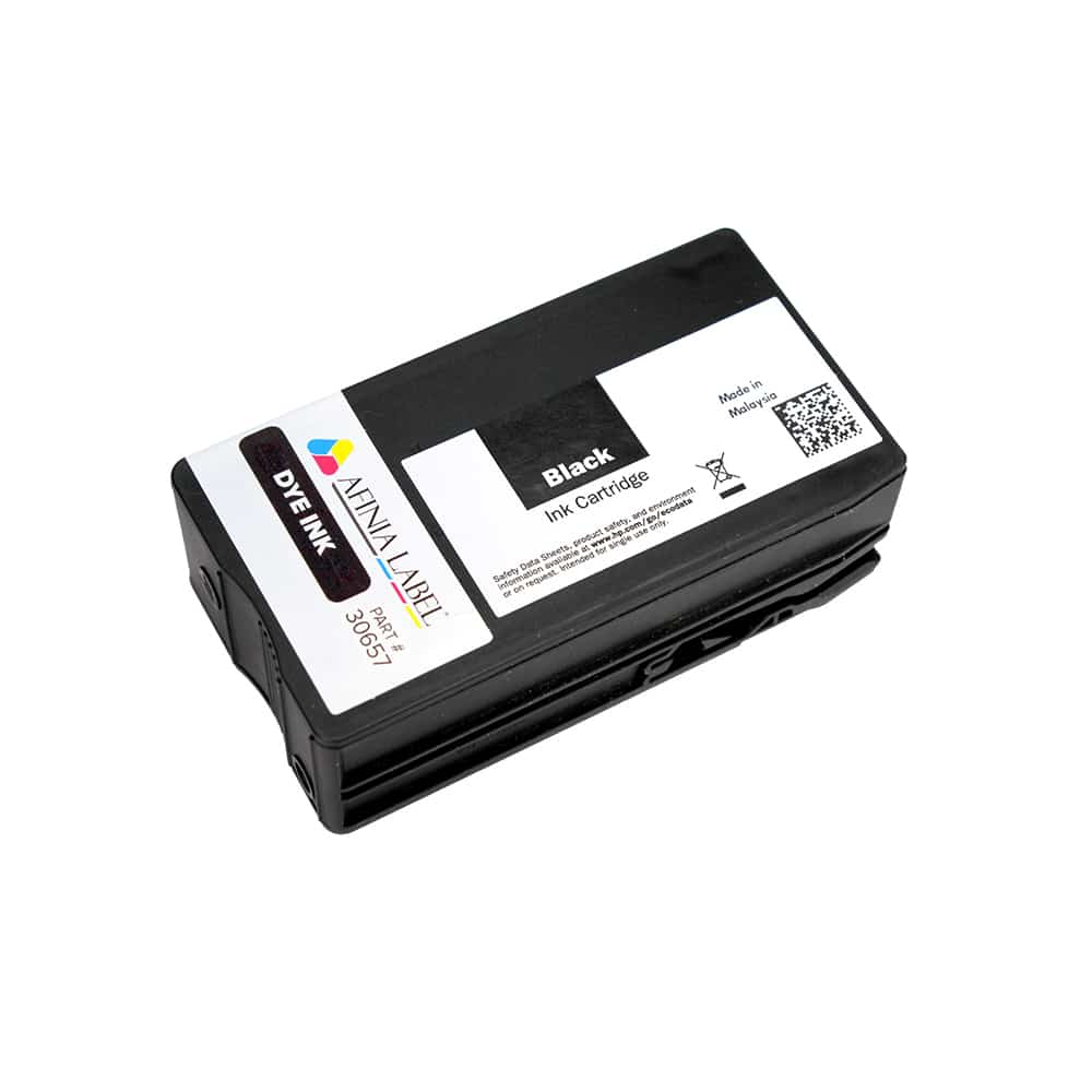 Afinia L501/L502/F502 Black Dye Ink Cartridge (part # 30657) for use in the Afinia L501, Afinia F502 and Afinia L502 label printers, and requires an Afinia L501/L502/F502 Printhead using dye ink