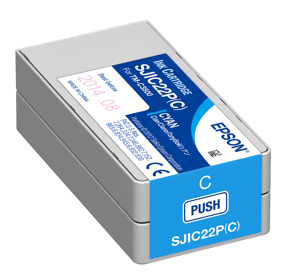 Epson ColorWorks C3500 Cyan Ink Cartridge (part # C33S020581, GJIC22P(C) or SJIC22P(C)) is for use in the Epson ColorWorks C3500 Label Printer.