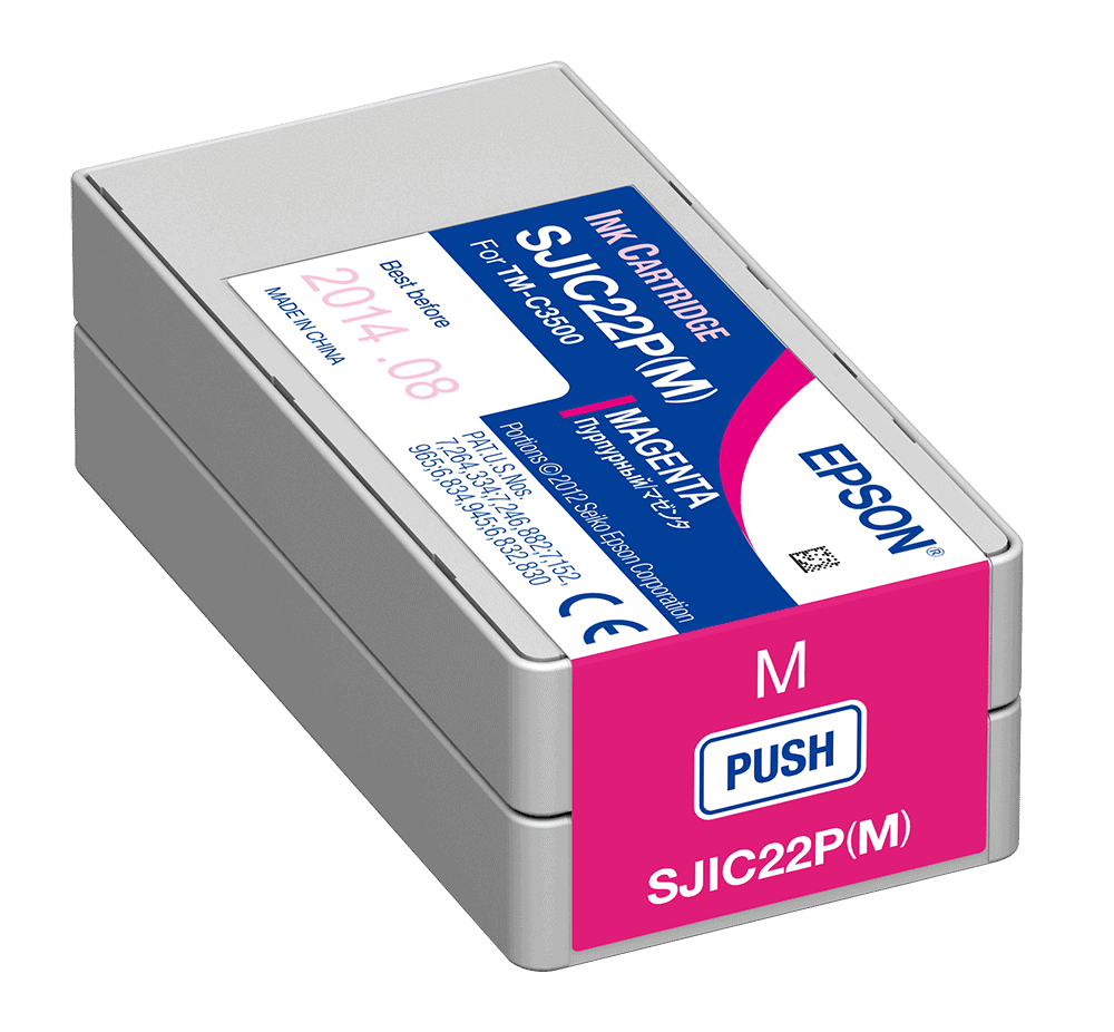 Epson ColorWorks C3500 Magenta Ink Cartridge (part # C33S020582, GJIC22P(M) or SJIC22P(M)) is for use in the Epson ColorWorks C3500 Label Printer.